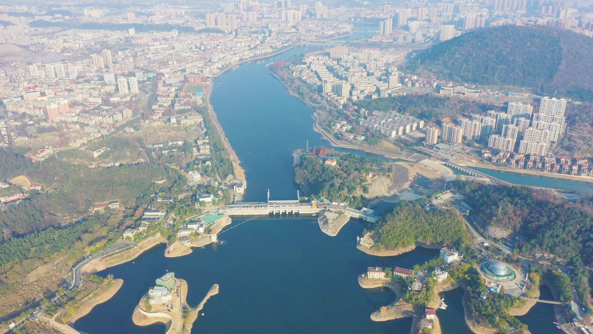航拍陆水水库主坝。(湖北日报全媒记者 彭磊 通讯员 江涛 摄)
