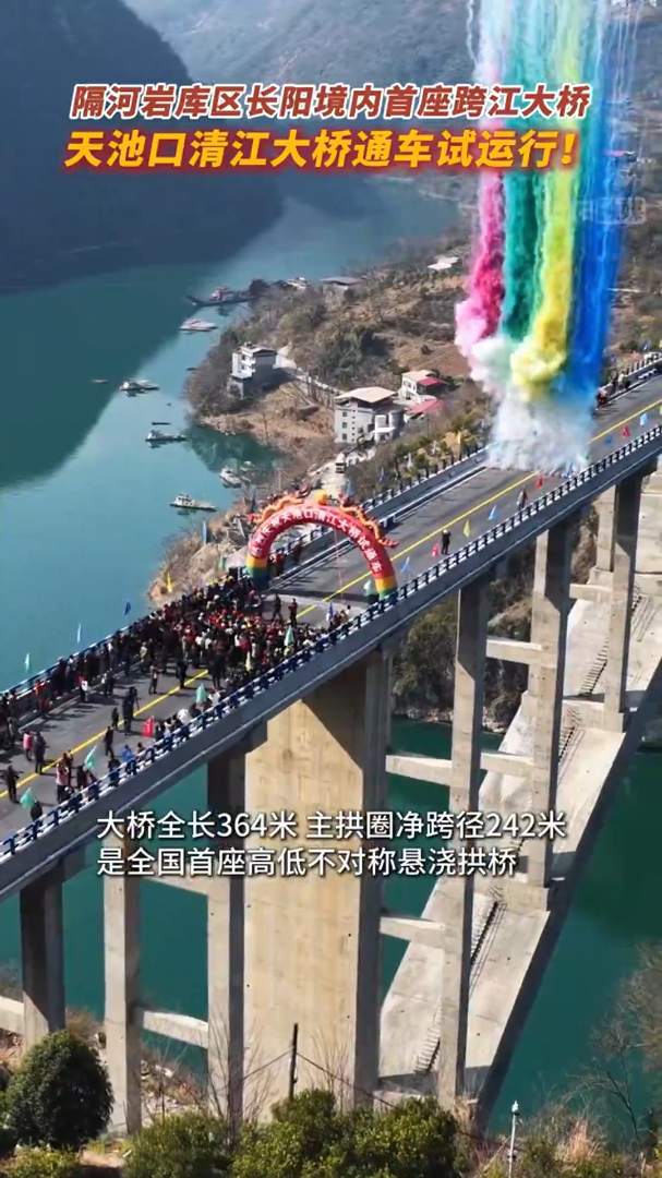 这一天,长阳土家族自治县资丘镇境内的天池口清江大桥,迎来了试通车。