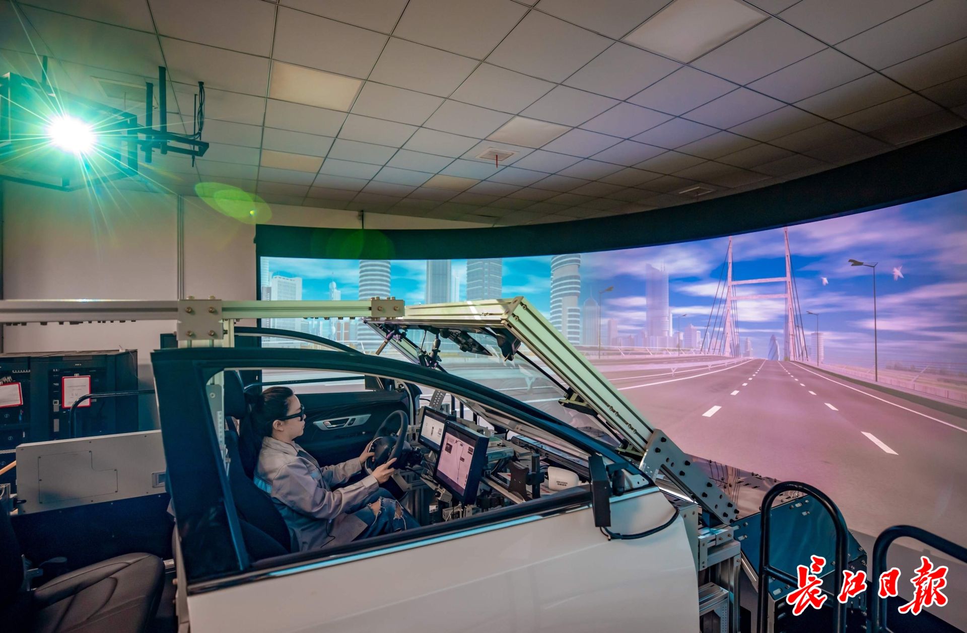 东风汽车研发总院工程师正在仿真实验室里进行测试。记者陈亮 摄