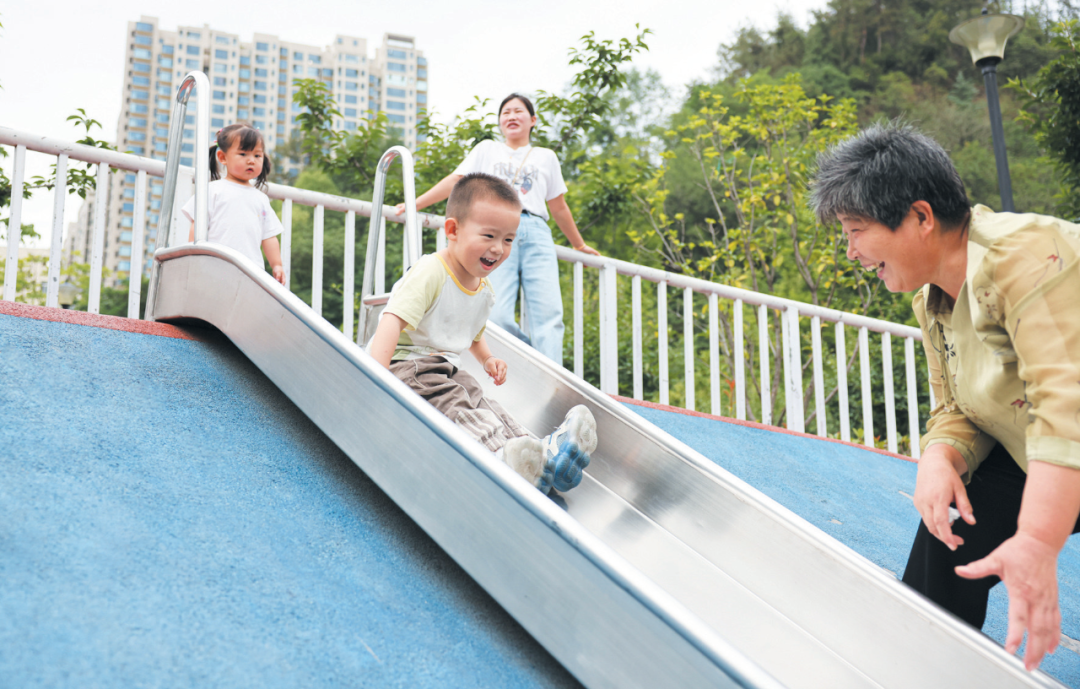 孩童在家门口的“口袋公园”里尽情嬉戏。张建波/摄