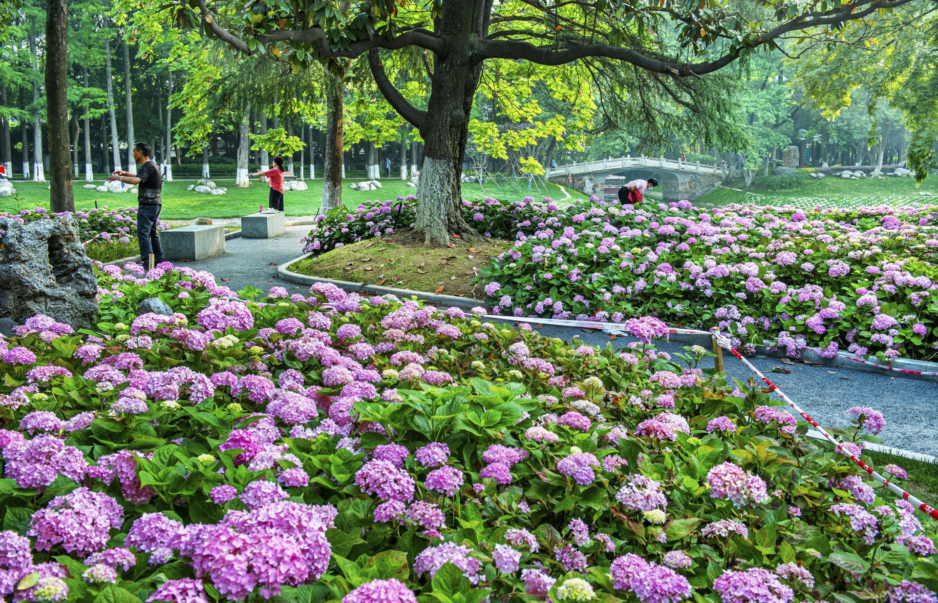 绣球与月季,则是春日长尾的华彩。沙湖公园专设绣球花园、月季园,还有单株开花近万朵的“月季王”,今年“五一”假期,这里还将举办武汉都市圈花展;木兰花乡景区则以300亩、百万株绣球,打造延绵花坡;和平公园以月季为“园花”,拥有80余种、3.5万余株月季,年年举办月季展;解放公园、汤湖公园、马鞍山森林公园、东湖落雁景区……公园里处处有绣球花海、时时见月季花墙,街头的百万月季景观道路,更是让春色绵延不绝。