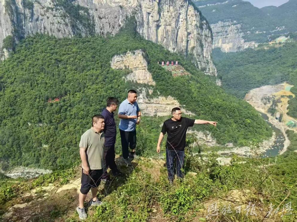 屯堡乡干部到姚家平水利枢纽工程现场察看水管走向。