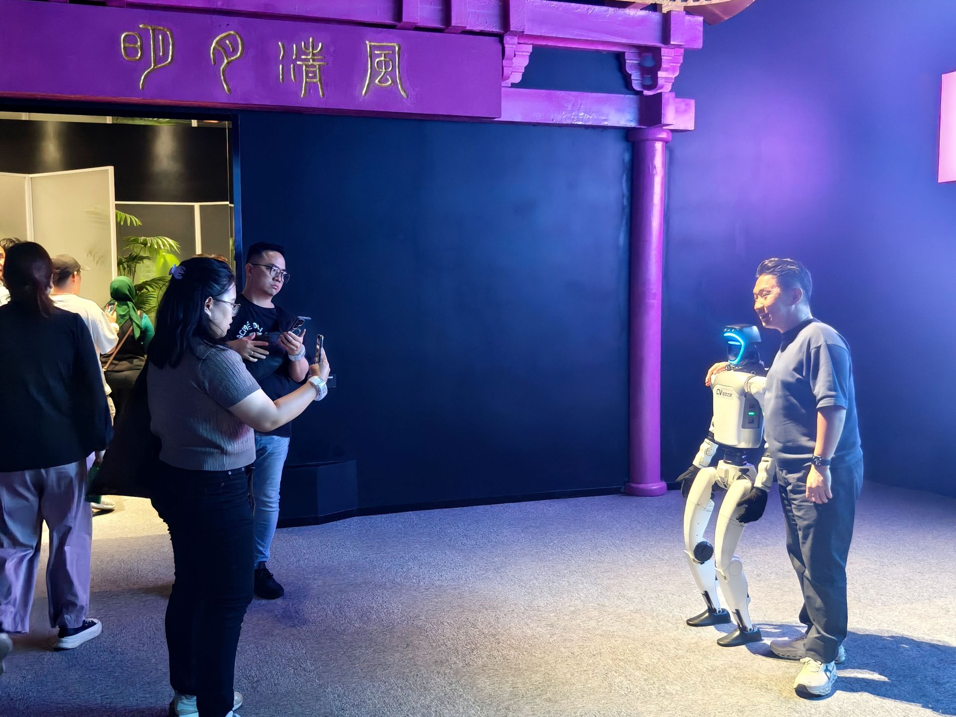 随后,考察团走进全球首家机器人主题沉浸式奇幻空间“创世之旅”。一周前,这里刚接待过马来西亚旅游团,如今再度迎来印尼游客,科技吸引力持续出圈。1700平方米的空间内,9D影院的全息投影令人惊叹,机器人斗舞瞬间点燃气氛,机械手臂弹奏的乐队表演更将体验推向高潮。“这完全超出了我的理解范围,太棒了!”印尼小伙Leo连连赞叹。一位印尼男生特意将手机镜头凑近,细致拍摄着机器人弹奏吉他的细节,在表演结束后,依旧兴致勃勃地和同伴交流着观看体验。