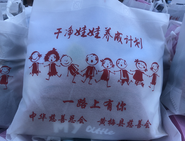 每个孩子收到的“干净娃娃养成计划” 包,里面有毛巾、水杯、花露水、消毒液、文具盒等学习、生活用品。让乡村小学的孩子们养成良好卫生习惯,健康快乐成长。